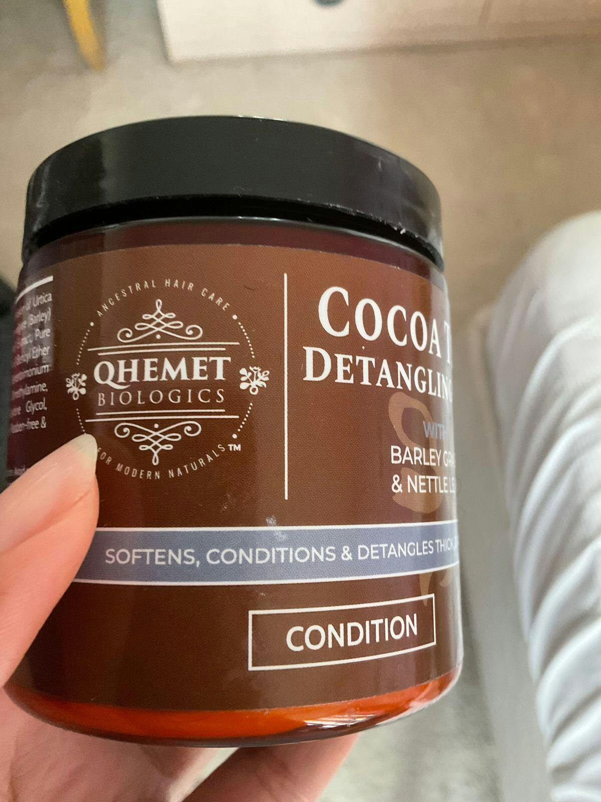 Qhemet Biologics Cocoa Tree Detangling Ghee is ideal for high porosity, 4C – 3C hair. It smooths cuticles and improves combability to restore manageability, softness and elasticity to dry, tangled hair.